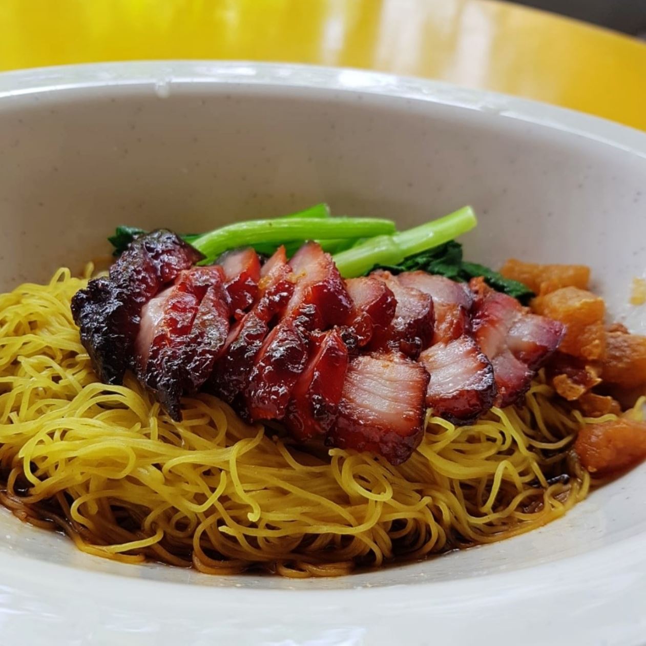 Chef Kang’s Wanton Mee shiok sia! Tucked away in an industrial canteen, this place serves up amazing wanton mee. The noodles are springy with that QQ bite, no weird taste, and drenched in a crazy good dark soy sauce. The char siew is melt-in-your-mouth juicy, wantons are packed with meat, and the soup is light and refreshing. Apparently, Chef Kang himself trained these young guys to cook it perfectly. Chef Kang’s Noodle House might be humble, but the food is damn good lah! Don’t skip it!