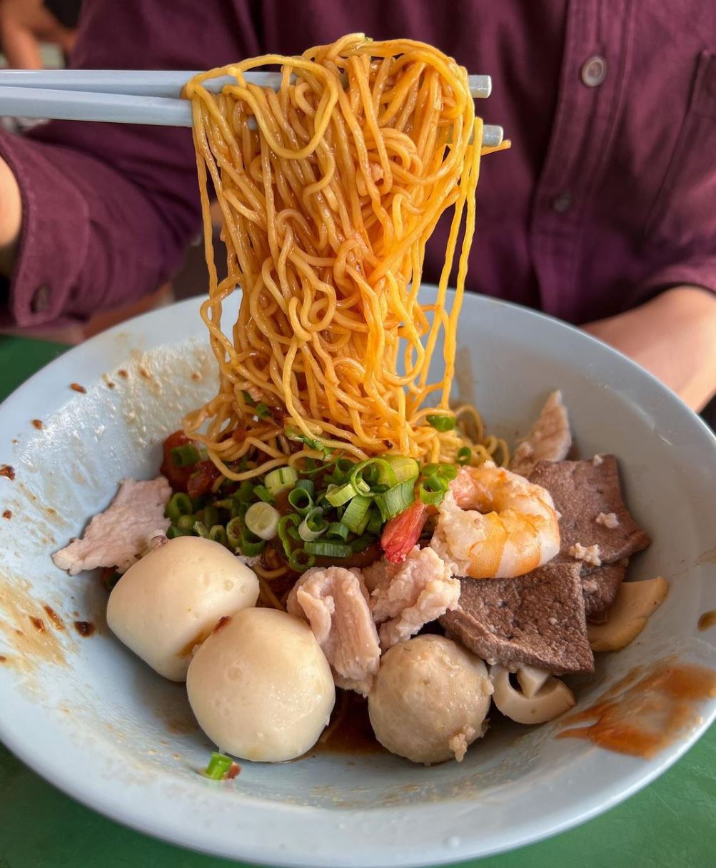 The young chef here is the grandson of the well-known “Ah Ter” from Amoy Street Food Centre. This version of bak chor mee is a bit richer and heavier on the sauces. The soup is flavourful, thanks to the minced pork and seafood, and the handmade fishballs are soft and juicy.